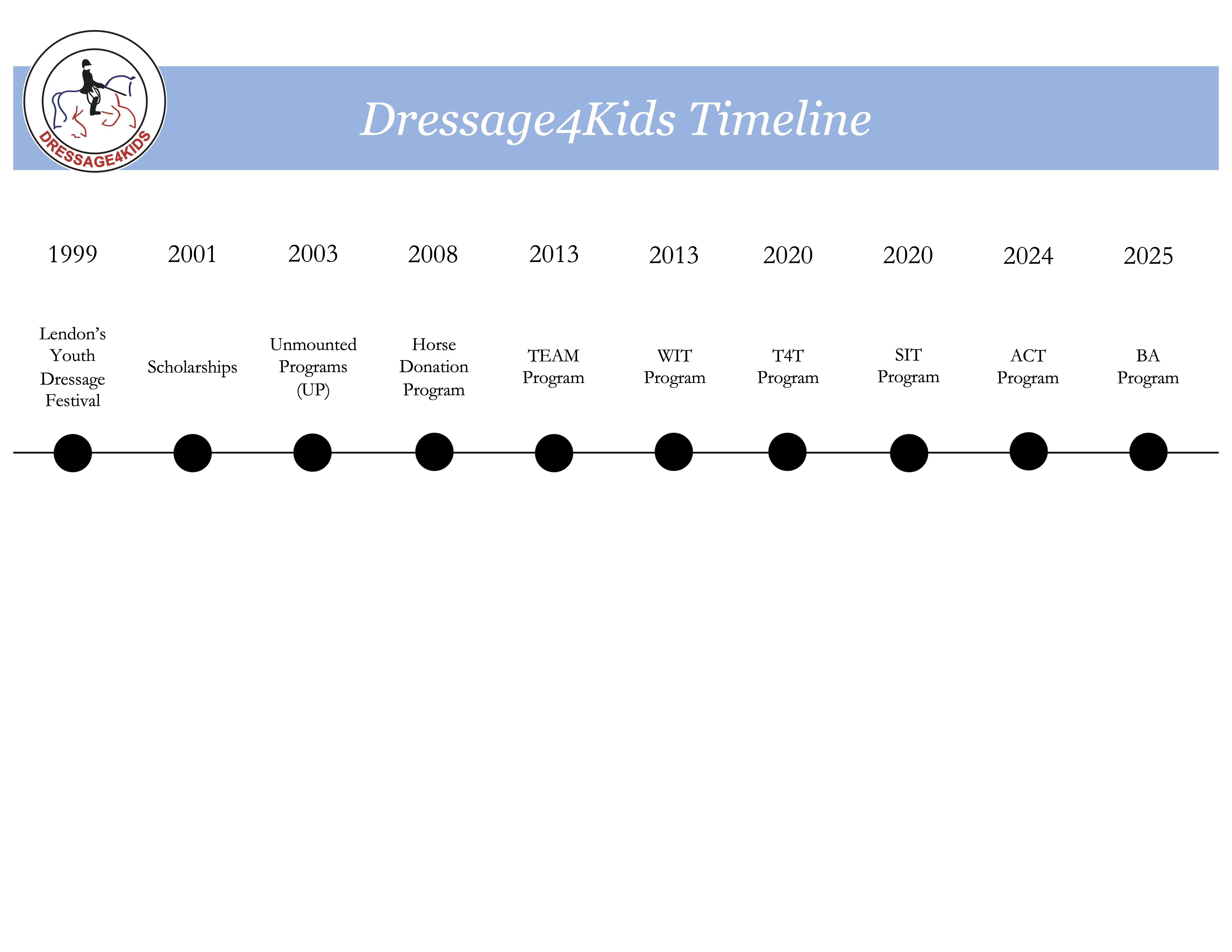 Dressage4Kids, Inc. sponsors and conducts the following events and programs throughout the year: